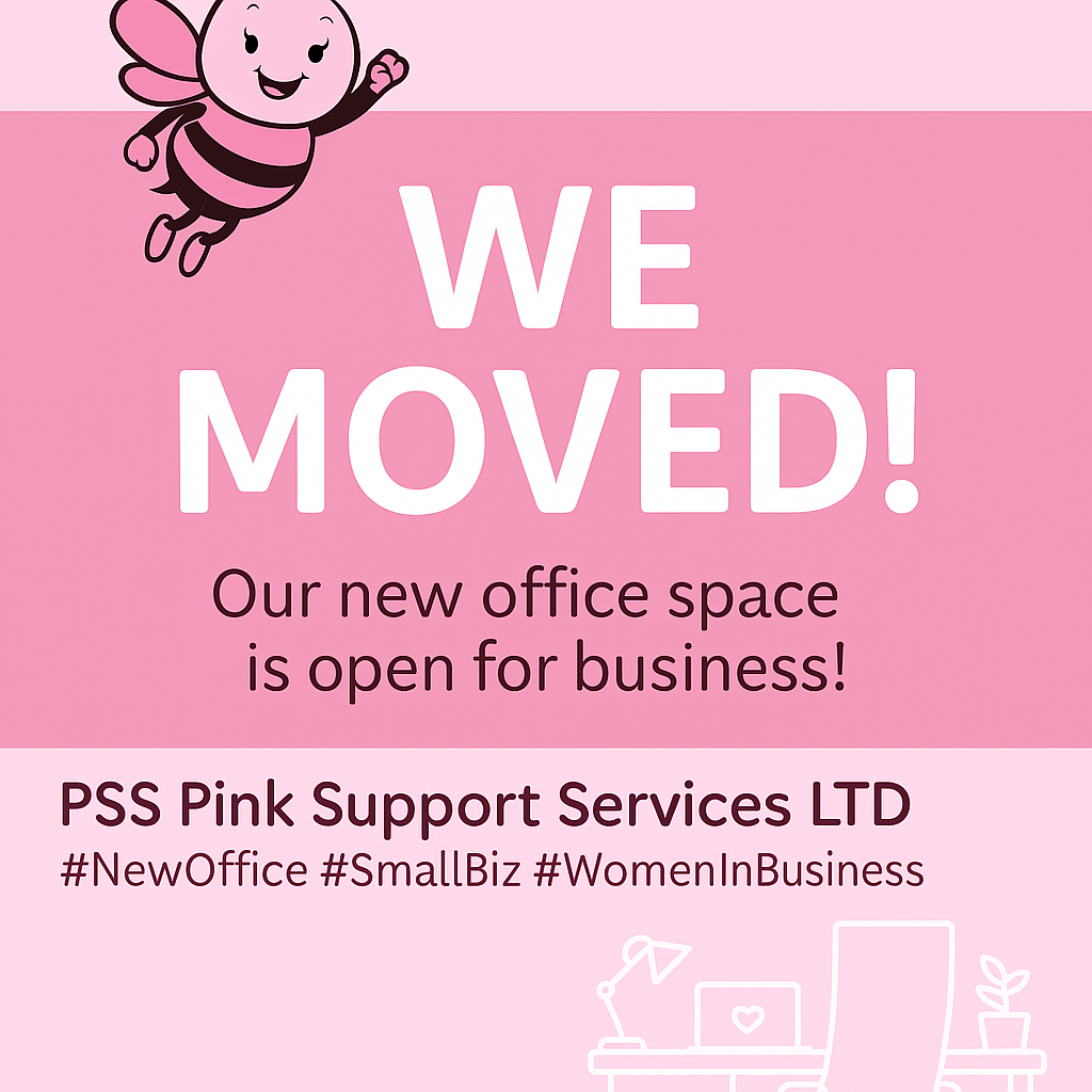 PSS NEW OFFICE SPACE Posted on June 4, 2025June 16, 2025 by PSS PINK SUPPORT SERVICES LTD Share this: Share on X (Opens in new window) X Share on Facebook (Opens in new window) Facebook Email a link to a friend (Opens in new window) Email Share on LinkedIn (Opens in new window) LinkedIn Like Loading... Related